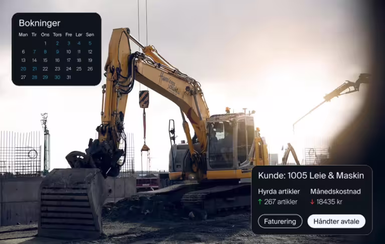 Vi leverer løsninger til maskinutleie, anlegg, kraner og entreprenørselskaper med internutleie. Vår erfaring gjør oss til en pålitelig partner for alle utleiebehov.