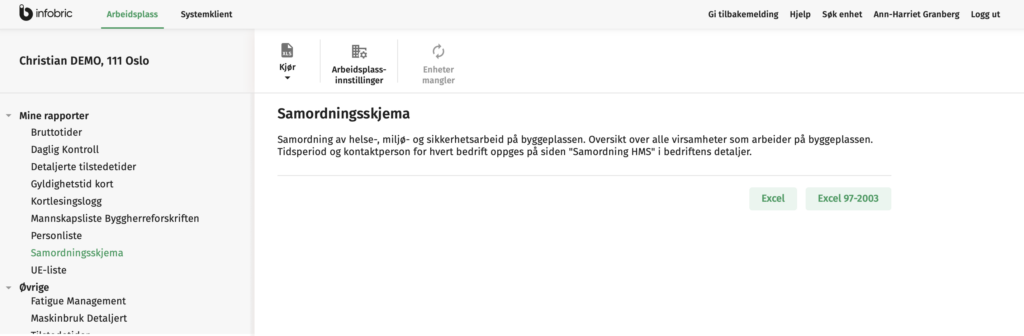 Alle på en byggeplass skal ha rask informasjon om hvem som skal kontaktes hvis det skulle være nødvendig. Hvis en ulykke skulle være ute, så er det viktig å vite hvem som skal kontaktes. Tradisjonelt har denne informasjonen blitt fylt ut for hånd eller manuelt i Excel-malen fra Arbeidstilsynet. Nå er det på tide å digitalisere samordningsskjemaet. I nettjenesten Infobric Site kan du enkelt hente ut en rapport over hovedbedriftens kontaktopplysninger, hvilke virksomheter som jobber på byggeplassen, aktuelle kontaktpersoner og tidsrom for samordningen.